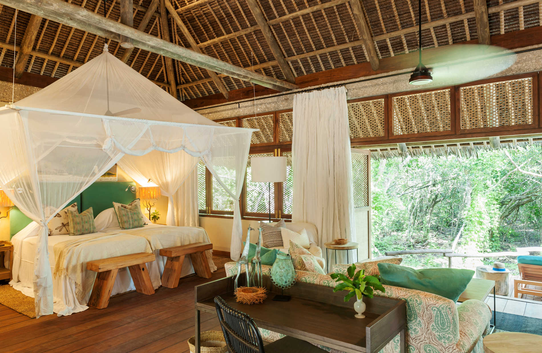 Die exquisite kleine Lodge wurde von 130 lokalen Arbeitern errichtet. Die Materialien, die hier verwendet wurden, stammen alle aus der Region: edles Holz, Marmorgestein, Macuti Matten für die Dächer. Die Besitzer haben mit schlichter Eleganz ein idyllisches Refugium in einer paradiesischen Umgebung geschaffen.