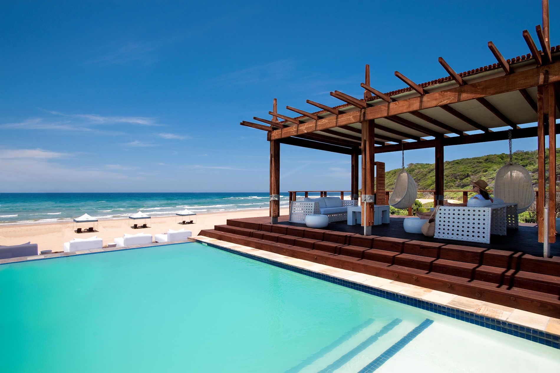 Der Hauptbereich der Lodge setzt sich zusammen aus einem schicken Restaurant, Lounge, Bar und einem großen Pool. Das Pooldeck der Hotelanlage verfügt über Himmelbetten, die Sie zum entspannen einladen.