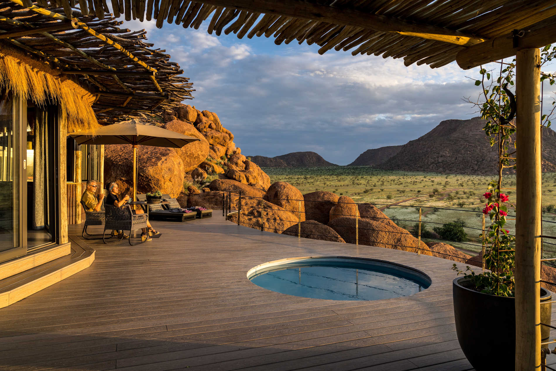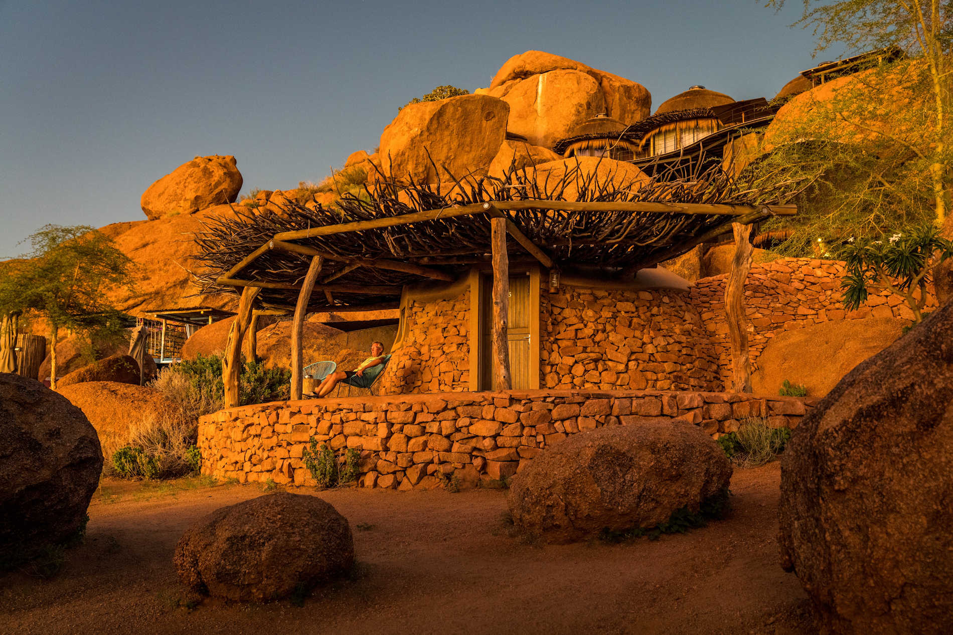 Neun aus Naturstein gemauerte Rondavel und eine Suite bieten den höchstens 20 Gästen Logenplätze vor der einmalig schönen Naturkulisse. Lounge und Restaurantdeck laden zum Verweilen ein, und rechtzeitig zum Sonnenuntergang versammeln sich die Gäste hoch droben auf einem Felsplateau und genießen den traditionellen ‚Sundowner’.
