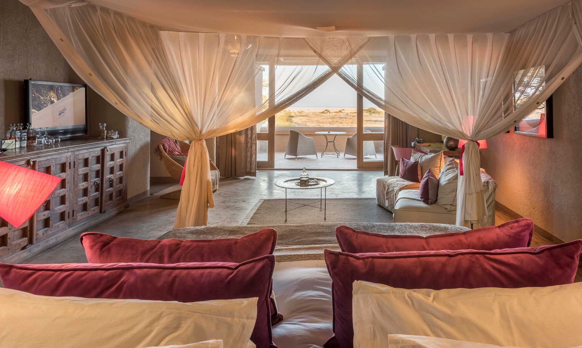 12 großzügige Bush-Suiten sowie eine luxuriöse Fort Suite bieten erstklassigen Komfort in eleganter Ausstattung. Die Bush- Suiten inklusive der Terassen sind ca 110 m² groß. Die luxuriöse Fort-Suite umfaßt ca 120 m² inklusive des Aussichtsdecks.