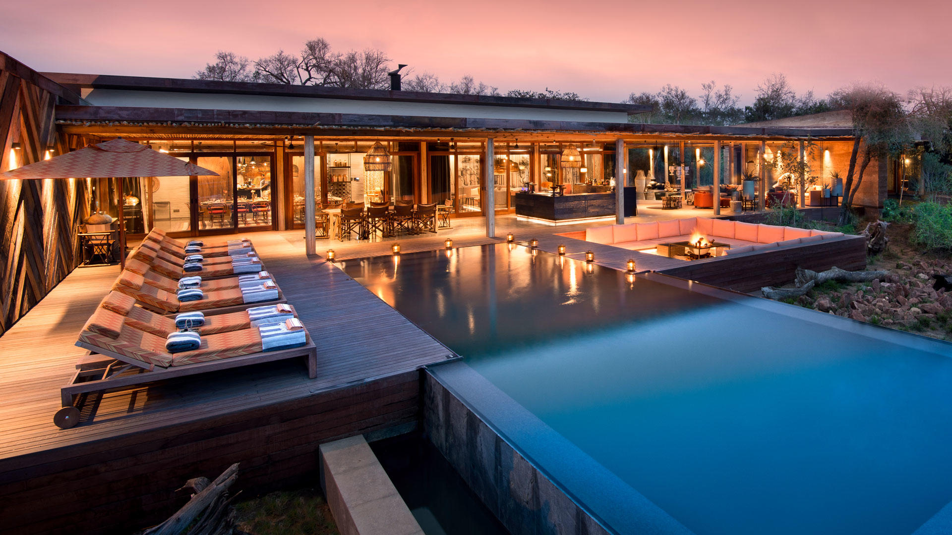 Diese exklusive, innovative Lodge besteht aus vier geräumigen und luxuriösen Suiten, die über einzigartige gleitende Tafel-Fenster, die eine tollen Ausblick auf das umgebende afrikanische bushveld ermöglichen und viel Licht hineinlassen, verfügen. Die Betten sind so ausgerichtet, dass Sie auch hier eine atemberaubende Sicht in die afrikanische Wildnis genießen können.